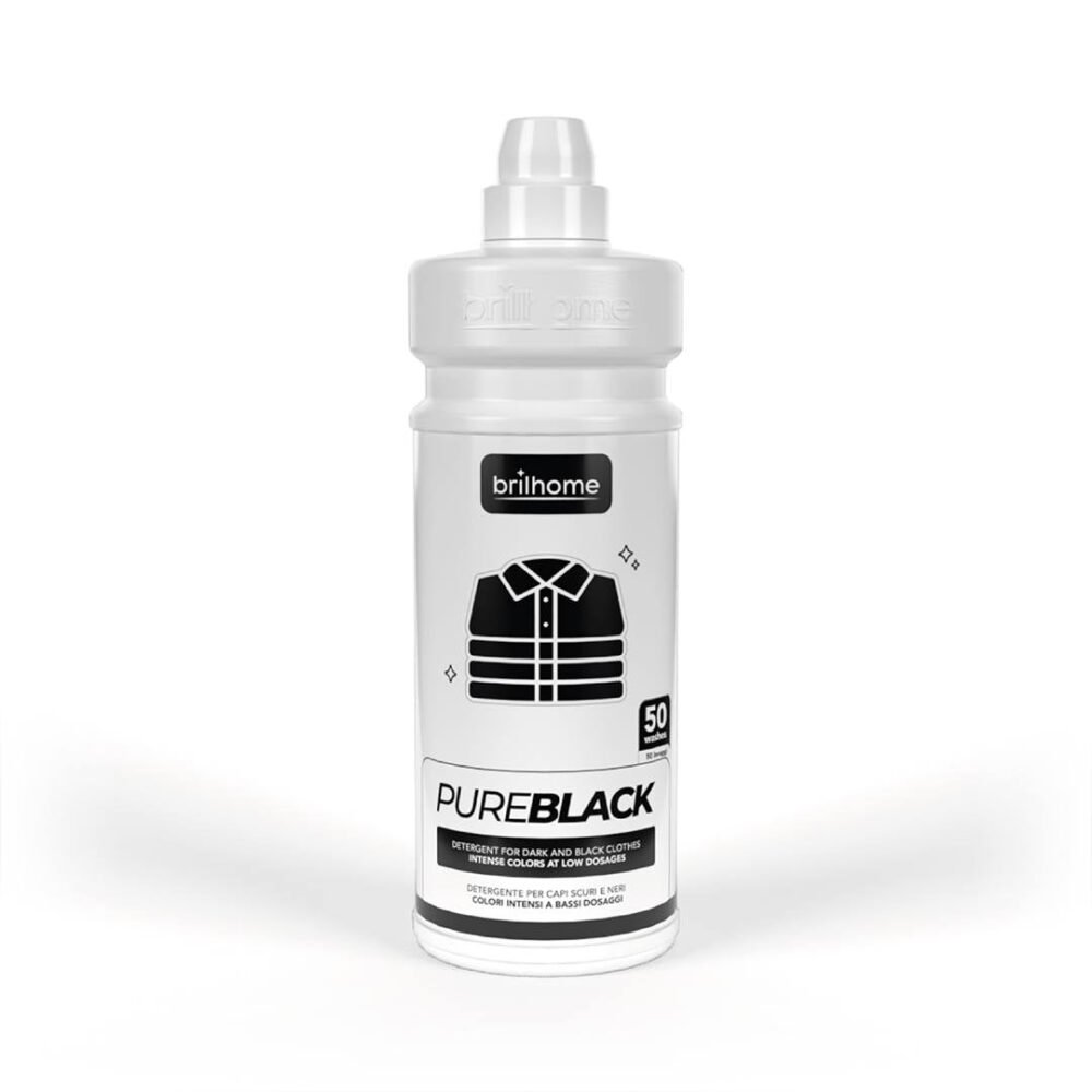 « Pure Black » de Brilhome est un détergent pour vêtements foncés et noirs conçu pour prévenir la décoloration des tissus. Son action est efficace contre les taches, mais douce sur les tissus : lavage après lavage, il préserve et ravive les couleurs foncées d’origine.